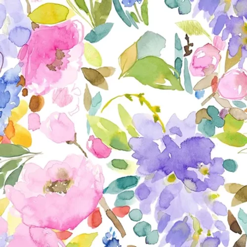 A digitally printed, wallpaper panel design featuring an all over pattern of large scale, watercolour flowers and leaves. Shown here in various vibrant colours on an off white background. The full design width is 210cm. The length of each panel is 3m. This item is sold as a single roll comprising of 3x 3m lengths, each 70cm wide. Paste-the-wall product.