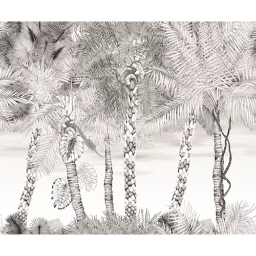 An extraordinary digitally printed panel designed to re-imagine an entire wall. Palm trees stand before a landscape of open sky. Illustrative in style with a variety of pattern themes running throughout. Printed on a non-woven ground for easy hanging and fully washable. Sold as single roll 45 cm wide and 24m long which will create a panel 3m high and 3.6m wide. Vertical pattern repeat = 300cm, Horiz. = 360cm. Paste the wall.