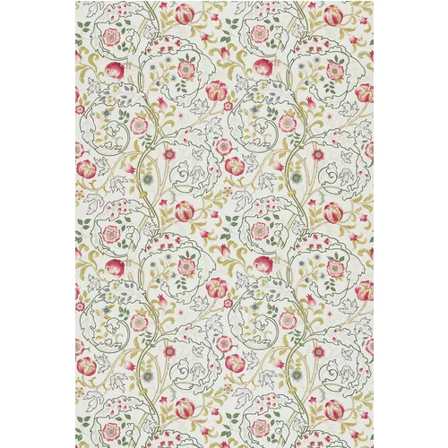 A delicate, scrolling embroidery design with acanthus leaves and small flowers, which co-ordinates with the wallpaper design. Shown here in the Pink / Ivory colourway. Printed on a 100% linen fabric.