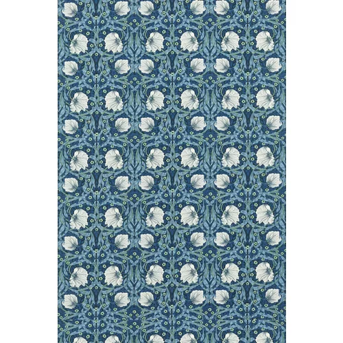A stunningly beautiful classic Morris style floral trellis with circular shapes and a strong symmetrical pattern within the leaves. Seen here in the Midnight/Opal colourway.