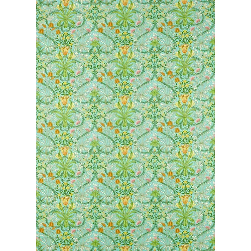 Depicting ‘millefluers’ or many different small flowers and plants, Woodland Weeds is one of Ben Pentreath’s favourite designs. Often shown on a green ground, as though growing in grass, the pattern is attributed to John Henry Dearle. First printed in 1905, this archive document is unusually symmetrical and perpendicular for a Morris & Co. design. Vertical Pattern Repeat 39.5 cm, straight match.
