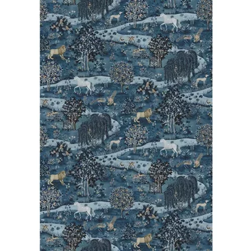 Created to celebrate the 160th anniversary of Morris & Co., charming wildlife, stylised trees and delicate florals combine in this enchanting scene. Drawing from the many motifs and subjects that populated over a century of Morris & Co.’s Arts & Crafts style, Owl & Willow’s bucolic scene offers pause to reflect on the beauty of nature. This design is printed in 3 sections on 1 roll that can then be cut & joined, together to make a full scene. Each roll comprising of 3 x 300cm panels (A B C) with spacing between each panel for cutting/trimming. The 3 panels make a total scene width of 205.5cm when hung. Seen here in the Indigo colourway.