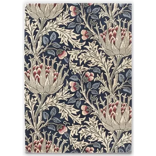 This beautiful hand-tufted rug features a large scale reinterpretation of this Morris classic, with its stylised artichoke flower within a complex leaf pattern. Shown here in shades of mineral blue, green and pink. This rug is perfect for bring warmth and iconic Morris design to the home.