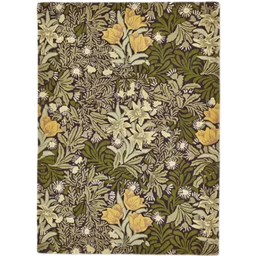 A densely packed design filled with floral delight. Influenced by the composition of medieval woodcuts, William Morris designed Bower in 1877 as a vibrant tribute to the forest walks and flowers he so adored. Seen here in the Twining Vine Green colourway, this rug is handtufted 100% pure new wool.