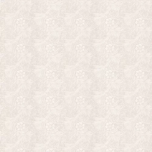 A vibrant new interpretation of the classic 1875 design which remains true to its engraved roots, this delicately complex two colour leaf and marigold floral design with its undulating vertical stripe effect, a classic, simple and elegant Morris design. Seen here in the Silver colourway. Actual pattern repeat is 26cm or 10.25 inches.
