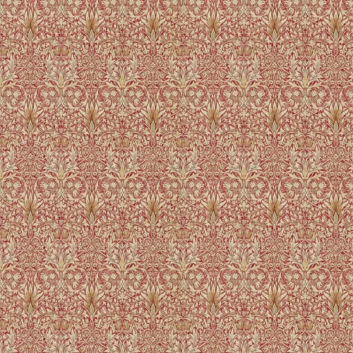 A delightful decorative design inspired by groups of three snakeshead fritillary flowers, giving a pleasing symmetry to the pattern. Based on the original archive 1876 design. Madder / Gold colourway. Wide width product.Previously 216426