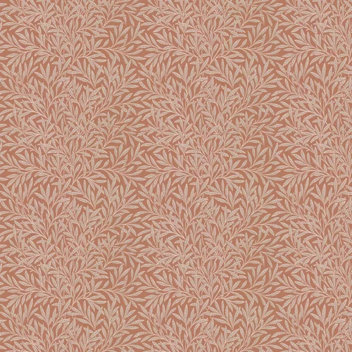The ultimate iconic classic William Morris design, with its soothing, curved willow branches against a warming metallic background. Used frequently within Morris’ work, the entwining leaves climbing vertically through this design is a reminder of nature’s virility. Seen here in the Russet colourway.