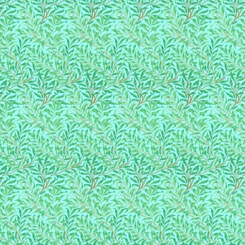 A vibrant new interpretation of the classic Morris wallpaper design from 1887. An all over pattern of willow leaves in two shades of green on a sky blue background. Shown here in the Sky/Leaf Green colourway.Willow boughs
