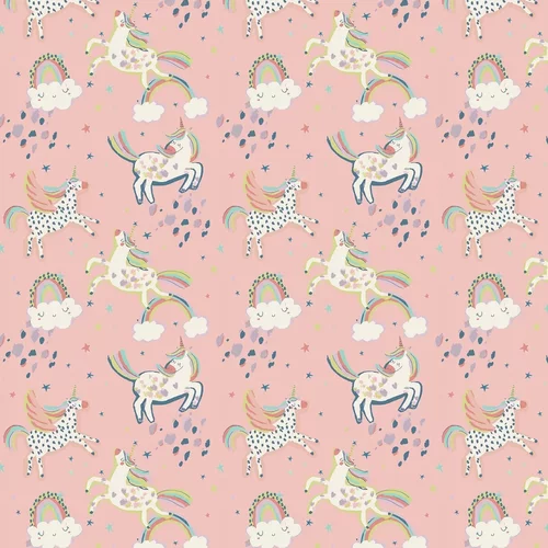 A fun and magical paper featuring unicorns and rainbows. Shown in the pink colourway.