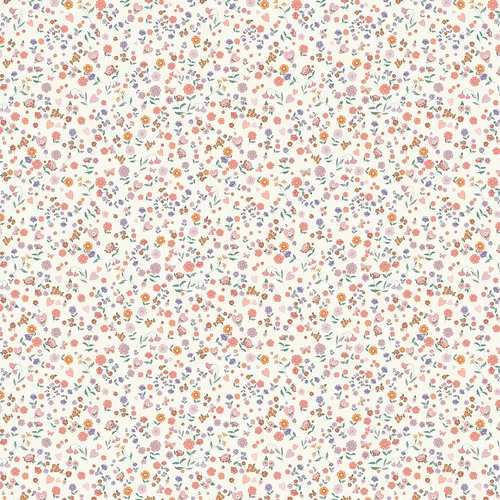 A ditsy floral print with a soft and gentle colour palette against a fresh background.