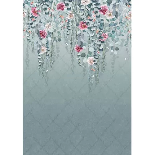 A timeless and whimsical design with different varieties of eucalyptus cascading down a wall. Beautiful ruffled peonies are interspersed decoratively. Shown here in the Aqua/Pink colourway. Please note this mural panel is printed on three lengths (each 70cm wide and 3m long).