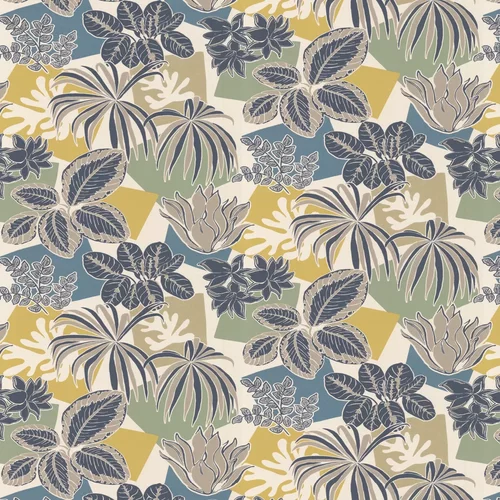 Striking jungle leaves cover this paper, featuring coloured blocks randomly placed elevating this design. Shown here in the gold colourway – other colourways available.