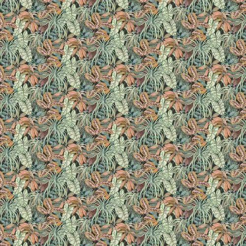 A celebration of popular British leafy plants adorn this design with a cascading wall of greenery. Seen here in the Charcoal / Pine colourway.