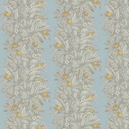 A beautiful, ornamental Medlar tree bearing its pretty blossom and fruits, featuring a vertical stripe layout. Shown here in the Sky / Chartreuse colourway.