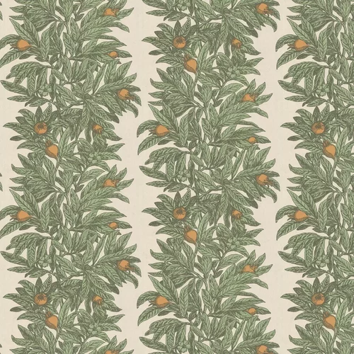 A beautiful, ornamental Medlar tree bearing its pretty blossom and fruits, featuring a vertical stripe layout. Shown here in the Sage / Amber colourway.