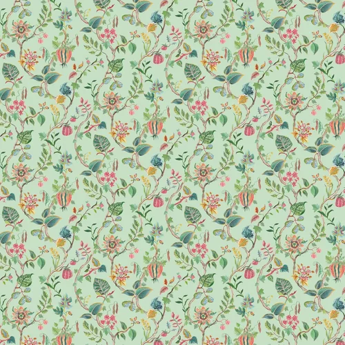 An imaginative trailing design encompassing passion fruit flowers, seed pods and decorative gourds.
