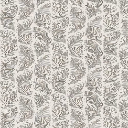 A contemporary and graceful all over design showing a uniform print feather print with intricate detailing against a muted background. Seen here in the Graphite colourway.