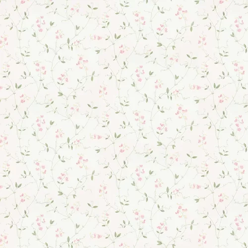 A pretty floral trail, with an old-fashioned sweet pea flower. Shown here with pink flowers and green leaves on a pale background.