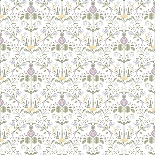 Bring a gentle Arts and Crafts style to your interior with this vibrant floral design, reminiscent of a traditional damask pattern with a stylised twist. Seen here in the Lilac colourway.