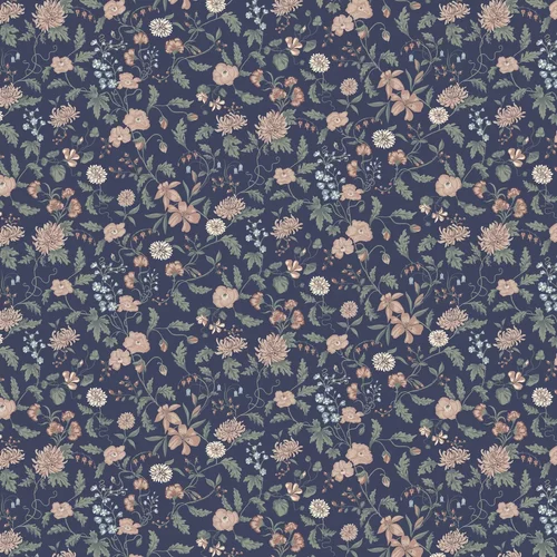 Escape to your own country garden with this stylish, bustling design. Showcasing blooming flowers, entwining vines and delicate flower buds against a contemporary background; creating your own little pocket of nature. Seen here in the Midnight Blue colourway.