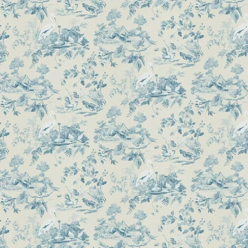 A beautifully detailed wallpaper featuring well-loved scenes from Aesop’s fables, such as The Tortoise and The Hare. Shown in the blue.