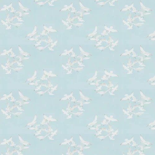 Inspired by an archive fabric print, flocks of seagulls are shown in a circular motif on a chalky colour background – perfect for recreating that seaside feel. Shown in the soft blue colourway.Search: Gull – Bird