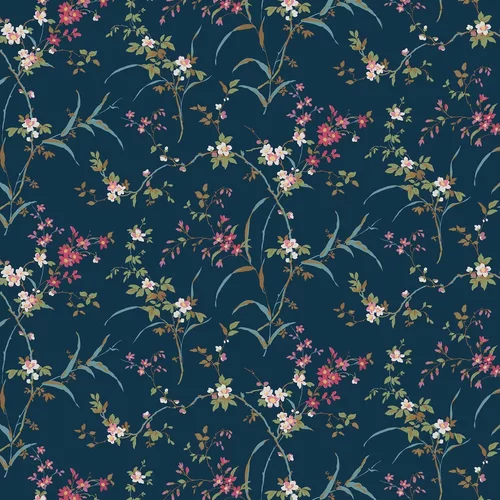 Introduce a touch of spring to your interior with this paper featuring delicate flowers blossoming off graceful foliage. Shown here in the navy colourway – other colourways available. Wide-width design, with a shorter than standard roll length.