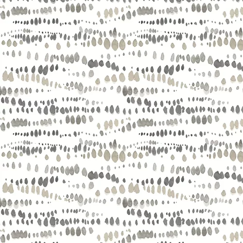 A bohemian print featuring watercolour droplets in horizontal formation. Wide-width design, with a shorter than standard roll length. The white ground is fresh and contemporary.