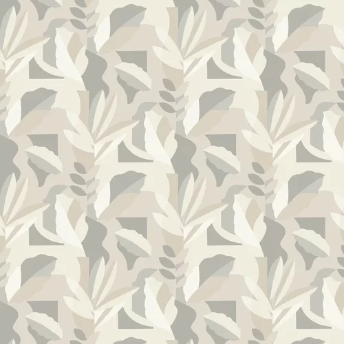 An abstract botanical design featuring layered silhouettes of palm leaves. Wide-width design, with a shorter than standard roll length.