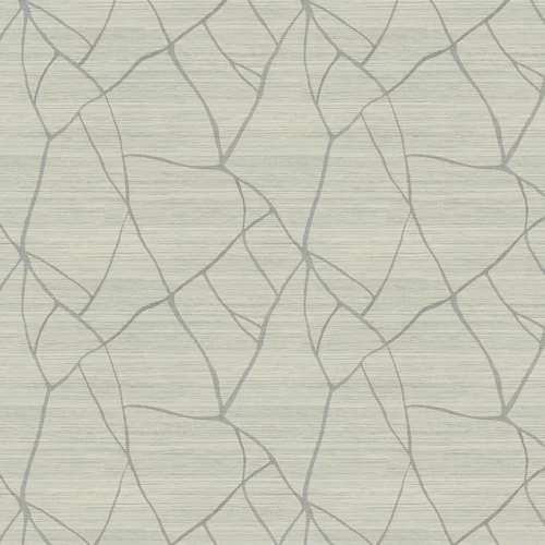 A contemporary faux grasscloth design. A linear pattern is overlaid, resembling a map of meandering rivers. Wide-width design, with a shorter than standard roll length. Spray and hang product.