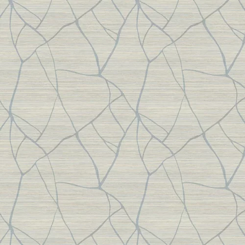 A contemporary faux grasscloth design. A linear pattern is overlaid, resembling a map of meandering rivers. Wide-width design, with a shorter than standard roll length. Spray and hang product.