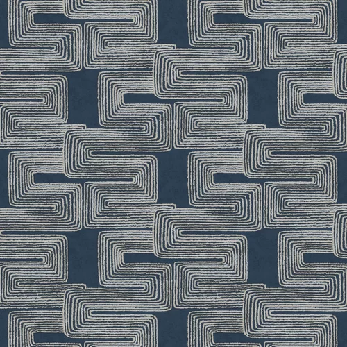 An abstract bohemian design featuring bold meandering lines. Wide-width design, with a shorter than standard roll length.